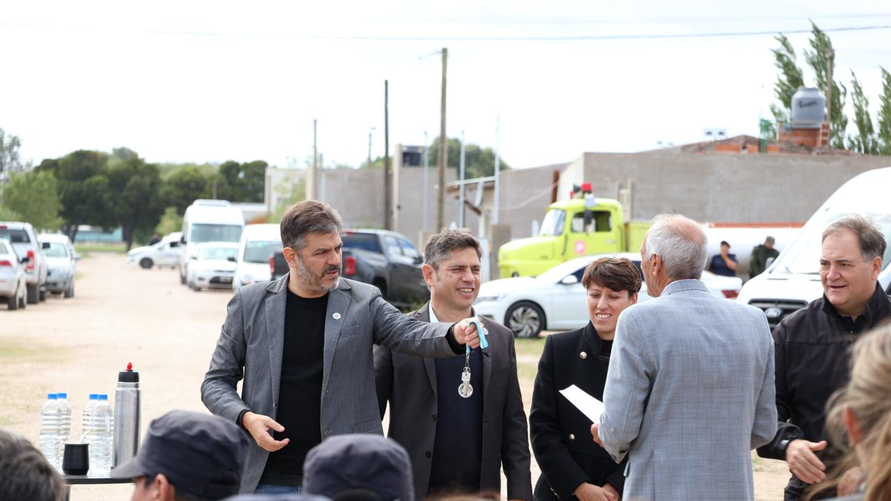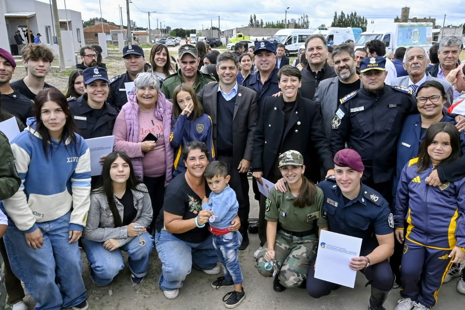 Hoy, en horas de la mañana, fueron entregadas kas 10 viviendas para el personal policial en barrio de De la Garma, el acto fue presidido por el Gobernador de la Provincia de Buenos Aires Axel Kicillof acompañado por el Ministro de Seguridad Javier Alonso, el Ministro de Gobierno Carlos Bianco. el Presidente Caja Retiros Jubilaciones y Pensiones de las Policias Dr. Carlos Langone, la Intendenta d e Gonzales Chaves Lucía Gómez, el Jefe de Superintendencia de Seguridad Región Interior Sur Comisario General Gonzalo Bezos, personal policial y familiares. Ademas participaron la Jefa de Asesores Cristina Alvarez Rodriguez, el Ministro de Salud Nicolás Kreplak, el Ministro de Infraestructura y Servicios Gabriel Katopodis, junto a intendentes, funcionarios provinciales municipales.
