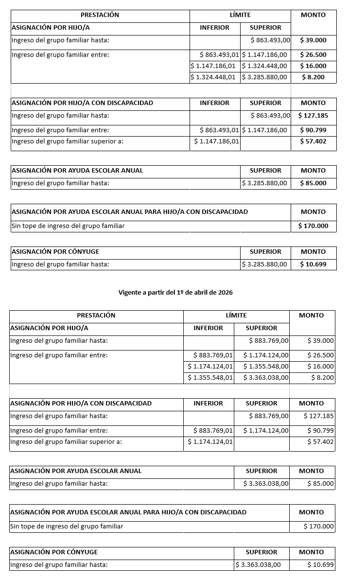Nuevos montos de Asignaciones Familiares a partir del 1º de diciembre 2025 y 1º de enero 2026
