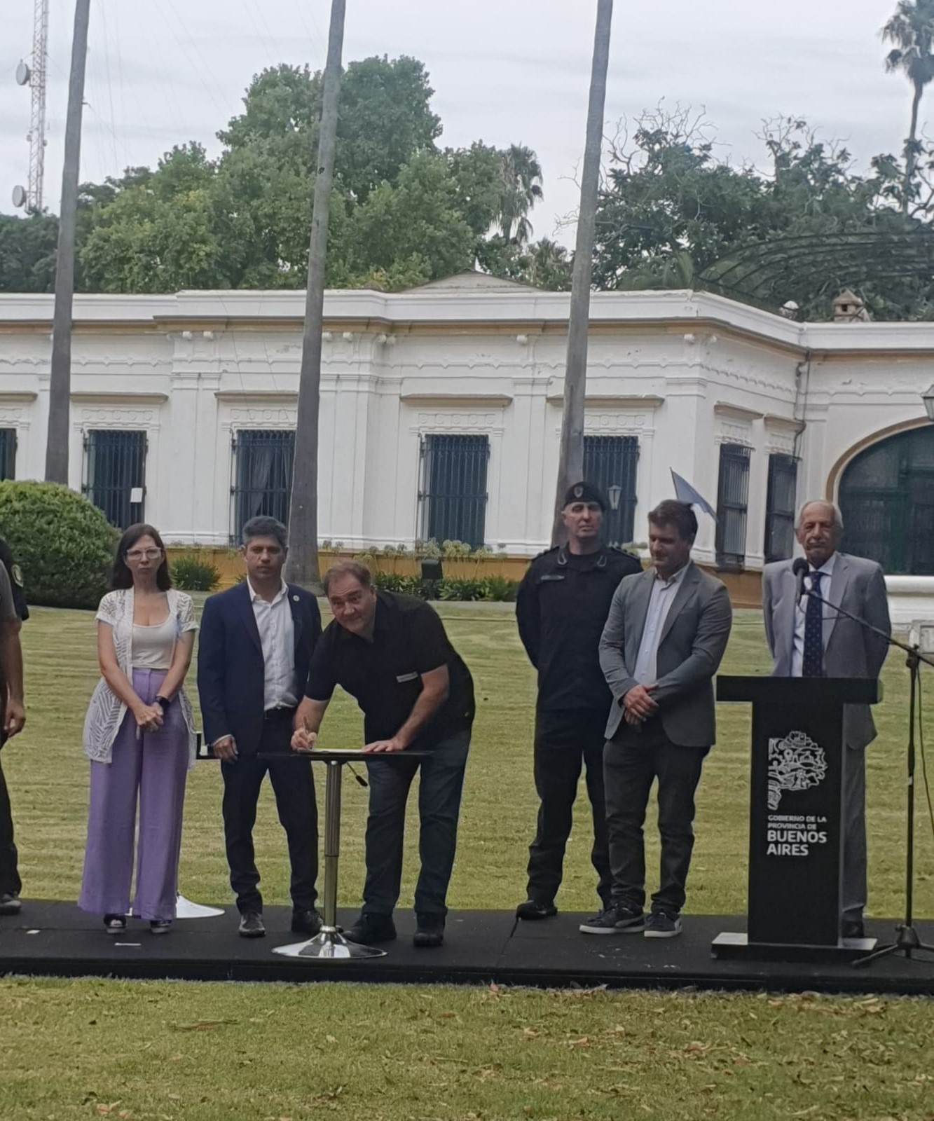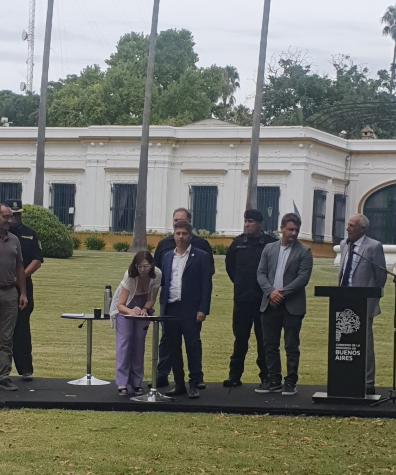En el día de ayer, en la escuela Juan Vucetich, se firmó el convenio entre el Ministerio de Hábitat y Desarrollo Urbano y la Caja de Retiros, Jubilaciones y Pensiones, para la construcción de 57 viviendas exclusivamente para personal policial, que en su momento determinará la Caja de Retiros, en terrenos aportados por el Fondo de Ayuda Financiera en la localidad de Azul. En dicha oportunidad se encontraban presentes el señor Gobernador, Axel Kicillof, el señor Ministro de Seguridad Javier Alonso, la señora Ministra Silvina Batakis, los señores Subsecretarios del Ministerio de Seguridad, el Jefe de Policía junto a la totalidad de los Superintendentes de Policía y numerosos intendentes de la provincia. La inversión que le demandará a la Provincia de Buenos Aires será de $5.093 millones, firmando para la ratificación del convenio el Señor Gobernador y el Ministro de Seguridad. El proyecto incluirá la infraestructura completa de servicios -agua, cloacas, electricidad, gas y pavimento-, garantizando el acceso a un hábitat digno para los agentes y sus familias.