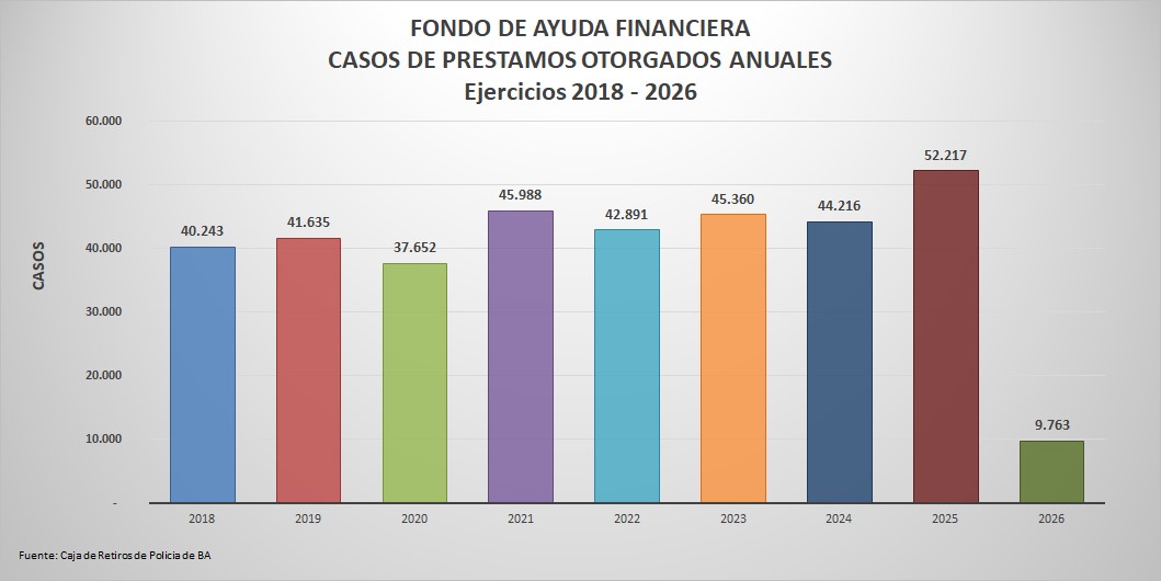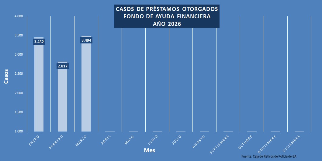 En el mes de marzo del corriente se han entregado la suma de pesos 8.000.767.500,00 en préstamos al personal afiliado, tanto activo como pasivo de esta Caja de Retiros, distribuidos en Personales 3.447 casos y préstamos para Heridos / Excombatientes (Personal pasivo) 47 casos, acumulando un total anual de 9.763 casos por 22.338.617.500,00.