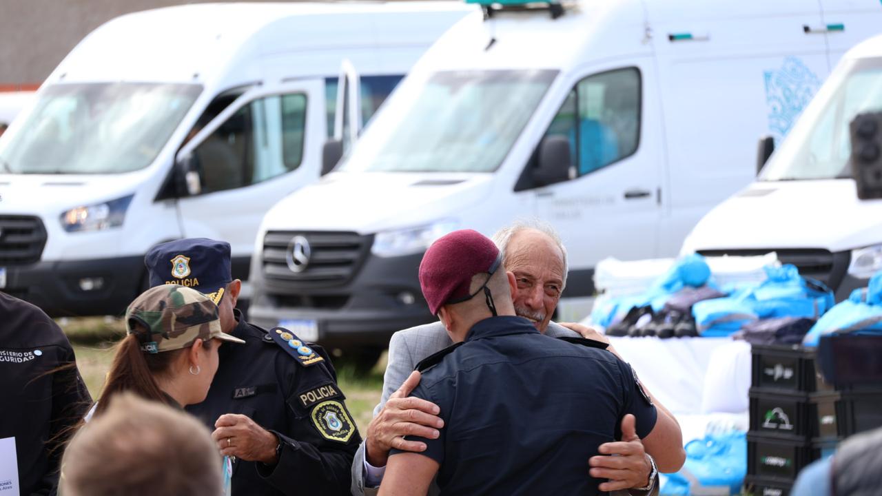 Hoy, en horas de la mañana, fueron entregadas kas 10 viviendas para el personal policial en barrio de De la Garma, el acto fue presidido por el Gobernador de la Provincia de Buenos Aires Axel Kicillof acompañado por el Ministro de Seguridad Javier Alonso, el Ministro de Gobierno Carlos Bianco. el Presidente Caja Retiros Jubilaciones y Pensiones de las Policias Dr. Carlos Langone, la Intendenta d e Gonzales Chaves Lucía Gómez, el Jefe de Superintendencia de Seguridad Región Interior Sur Comisario General Gonzalo Bezos, personal policial y familiares. Ademas participaron la Jefa de Asesores Cristina Alvarez Rodriguez, el Ministro de Salud Nicolás Kreplak, el Ministro de Infraestructura y Servicios Gabriel Katopodis, junto a intendentes, funcionarios provinciales municipales.